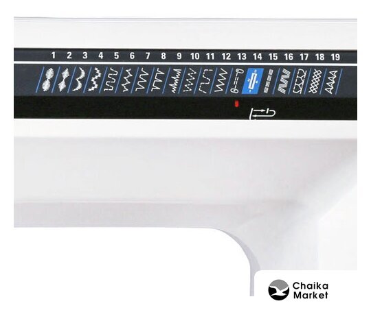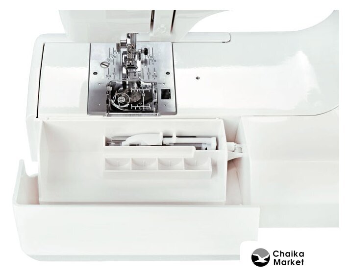 электромеханическая, вертикальный качающийся челнок, автоматическое выполнение петли, швейные операции: имитация оверлочной строчки/потайная строчка/трикотажная строчка/декоративная строчка