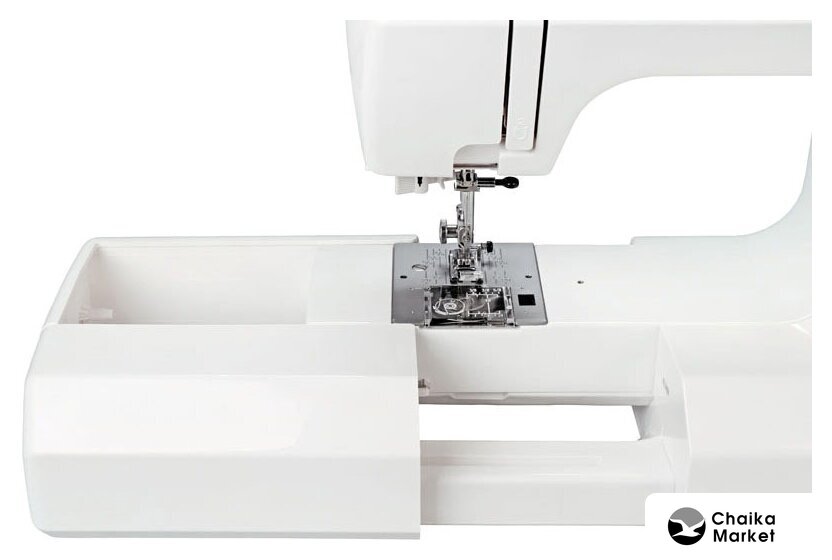 электромеханическая, вертикальный качающийся челнок, автоматическое выполнение петли, швейные операции: имитация оверлочной строчки/потайная строчка/трикотажная строчка/декоративная строчка