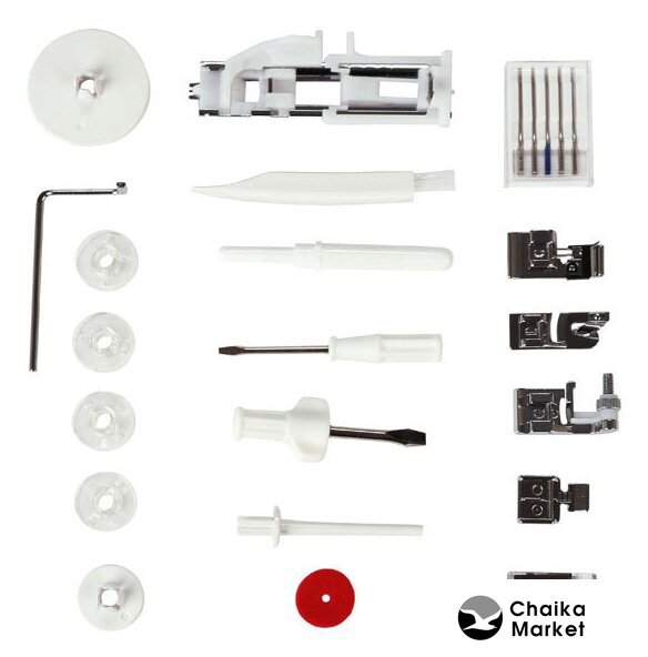 | Лапки | универсальная, для вшивания молнии, оверлочная, для потайной строчки, для декоративных строчек |