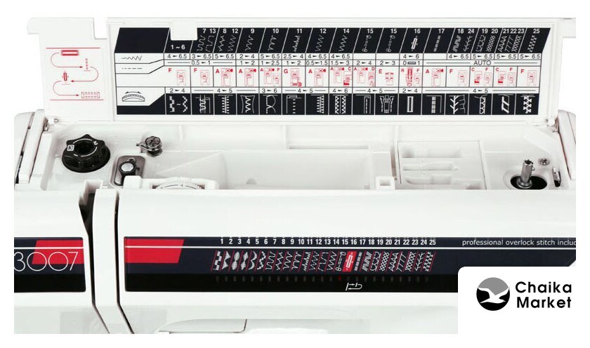компьютерная, горизонтальный ротационный челнок, автоматическое выполнение петли, швейные операции: имитация оверлочной строчки/потайная строчка/трикотажная строчка/декоративная строчка/алфавит (латиница)