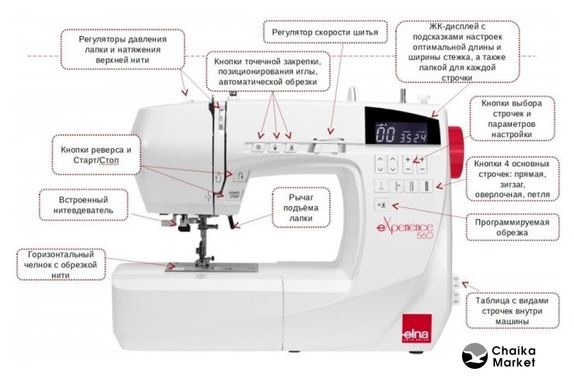 компьютерная, горизонтальный ротационный челнок, автоматическое выполнение петли, швейные операции: имитация оверлочной строчки/потайная строчка/трикотажная строчка/декоративная строчка