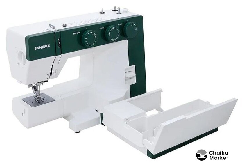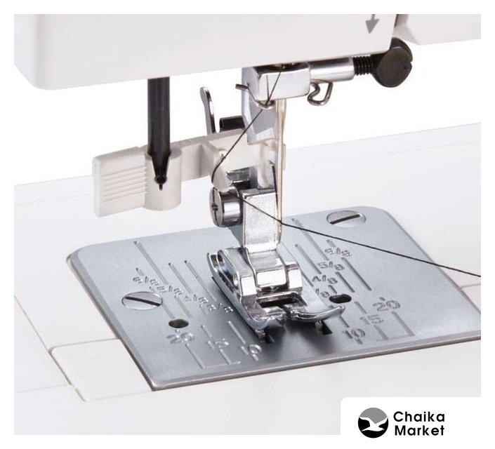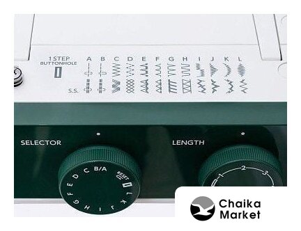 электромеханическая, вертикальный качающийся челнок, полуавтоматическое выполнение петли, швейные операции: имитация оверлочной строчки/потайная строчка/трикотажная строчка/декоративная строчка