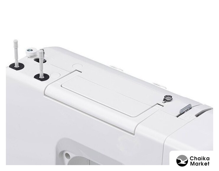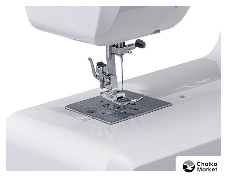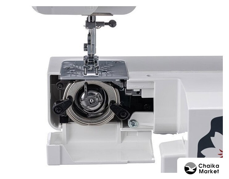 электронная, вертикальный качающийся челнок, полуавтоматическое выполнение петли, швейные операции: имитация оверлочной строчки/потайная строчка/трикотажная строчка/декоративная строчка