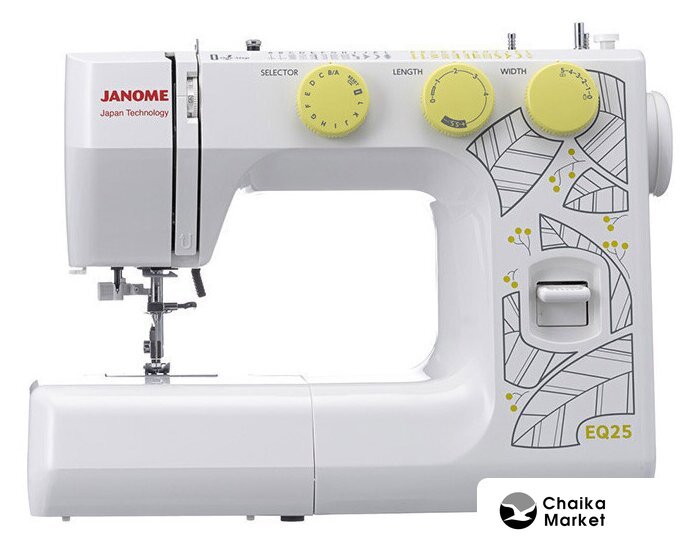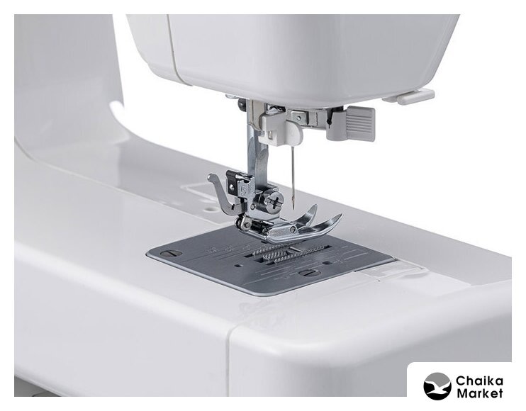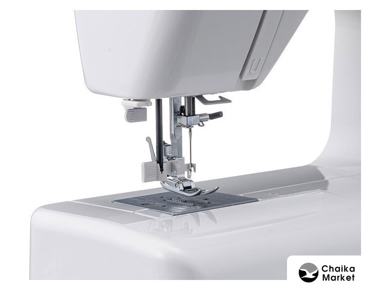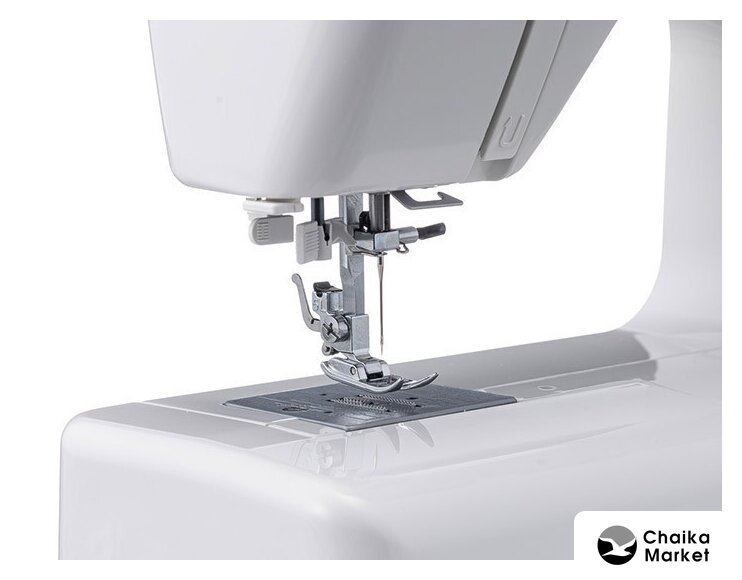 электромеханическая, вертикальный качающийся челнок, автоматическое выполнение петли, швейные операции: имитация оверлочной строчки/трикотажная строчка/декоративная строчка