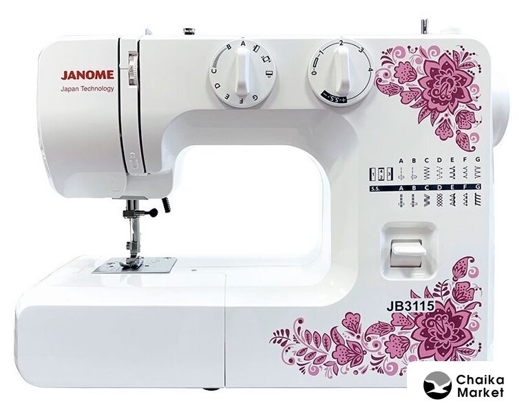 электромеханическая, вертикальный качающийся челнок, полуавтоматическое выполнение петли, швейные операции: имитация оверлочной строчки/потайная строчка/трикотажная строчка/декоративная строчка