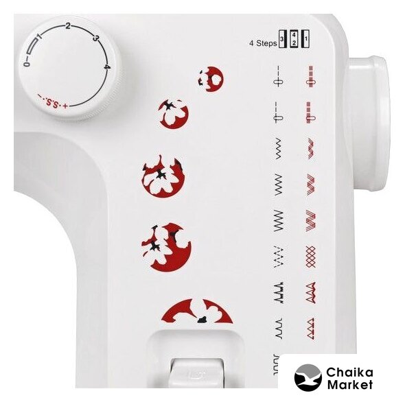 электромеханическая, вертикальный качающийся челнок, полуавтоматическое выполнение петли, швейные операции: потайная строчка/трикотажная строчка/оверлочная строчка