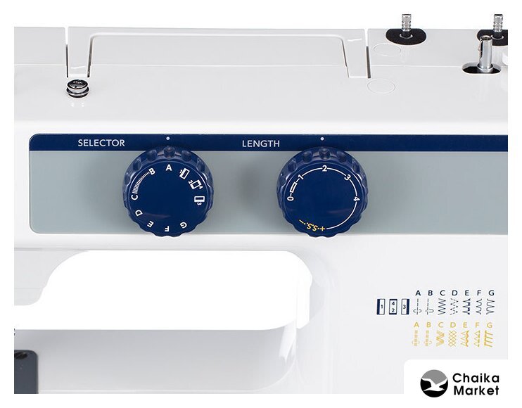 электромеханическая, вертикальный качающийся челнок, полуавтоматическое выполнение петли, швейные операции: потайная строчка/трикотажная строчка/оверлочная строчка