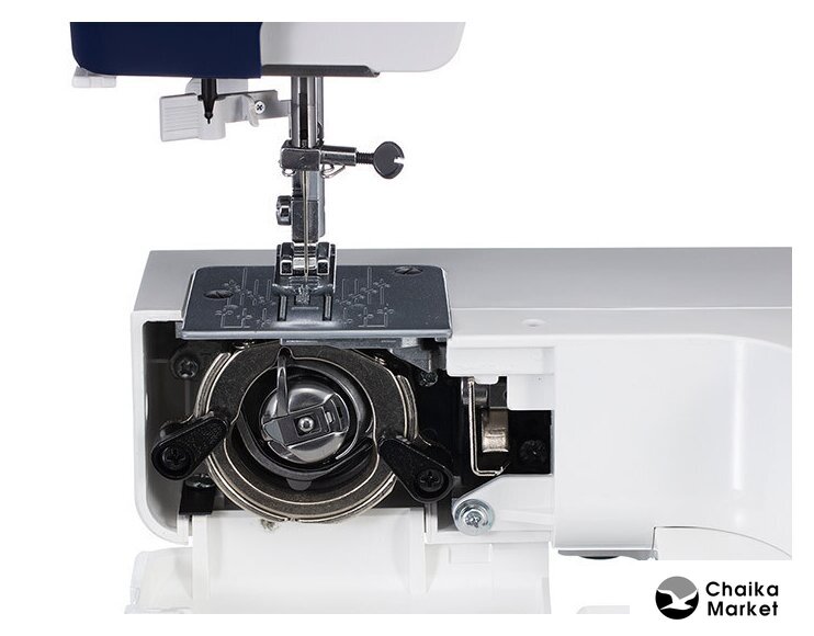 электромеханическая, вертикальный качающийся челнок, полуавтоматическое выполнение петли, швейные операции: потайная строчка/трикотажная строчка/декоративная строчка/оверлочная строчка