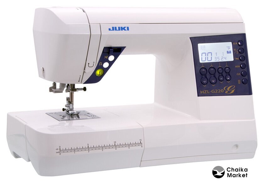 компьютерная, горизонтальный ротационный челнок, автоматическое выполнение петли, швейные операции: имитация оверлочной строчки/потайная строчка/трикотажная строчка/декоративная строчка/алфавит (латиница)/алфавит (кирилица)