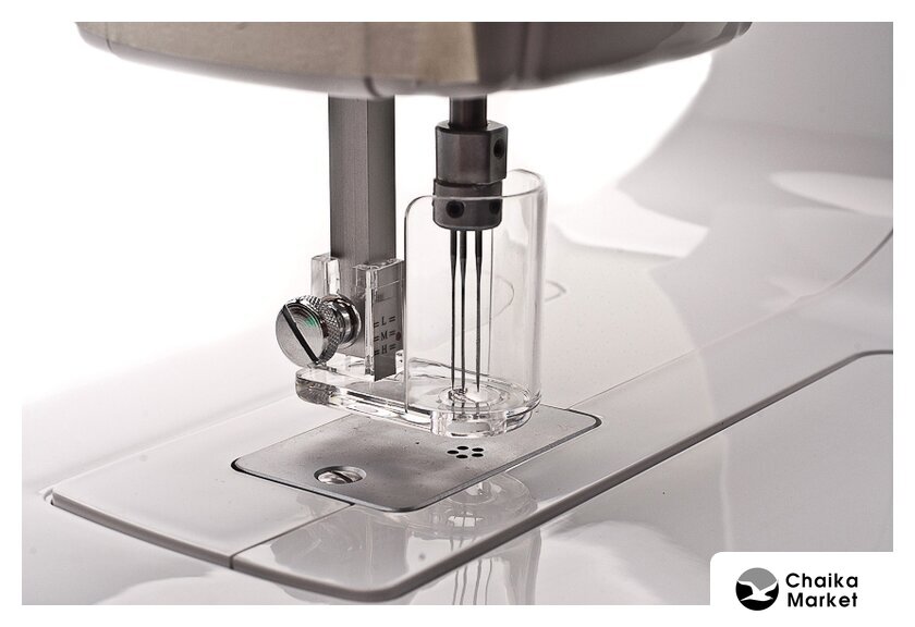 электромеханическая, вертикальный качающийся челнок, автоматическое выполнение петли, швейные операции: имитация оверлочной строчки/потайная строчка/трикотажная строчка/декоративная строчка