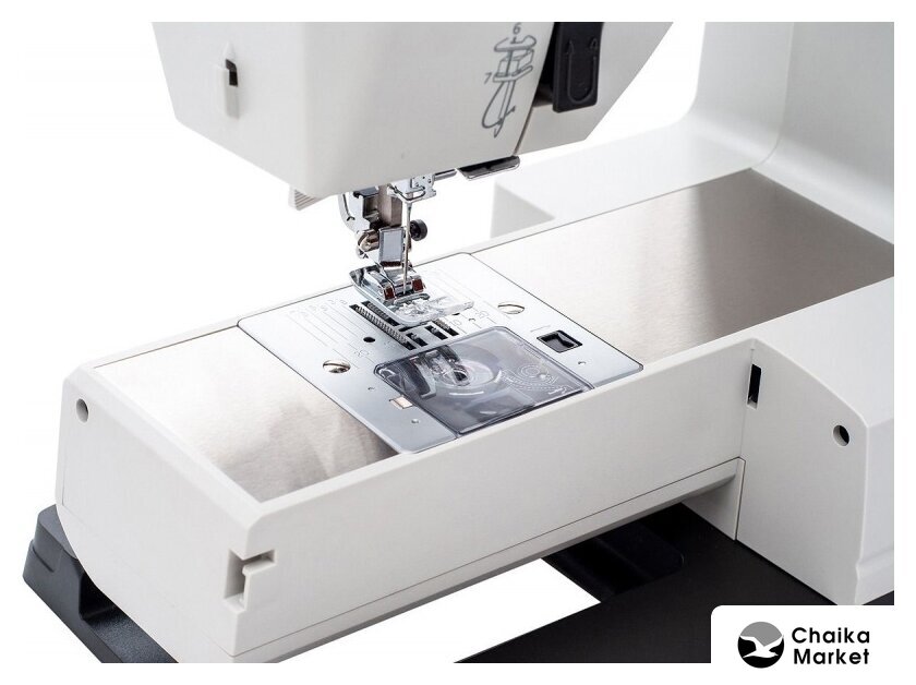 электромеханическая, вертикальный качающийся челнок, автоматическое выполнение петли, швейные операции: имитация оверлочной строчки/потайная строчка/трикотажная строчка/декоративная строчка
