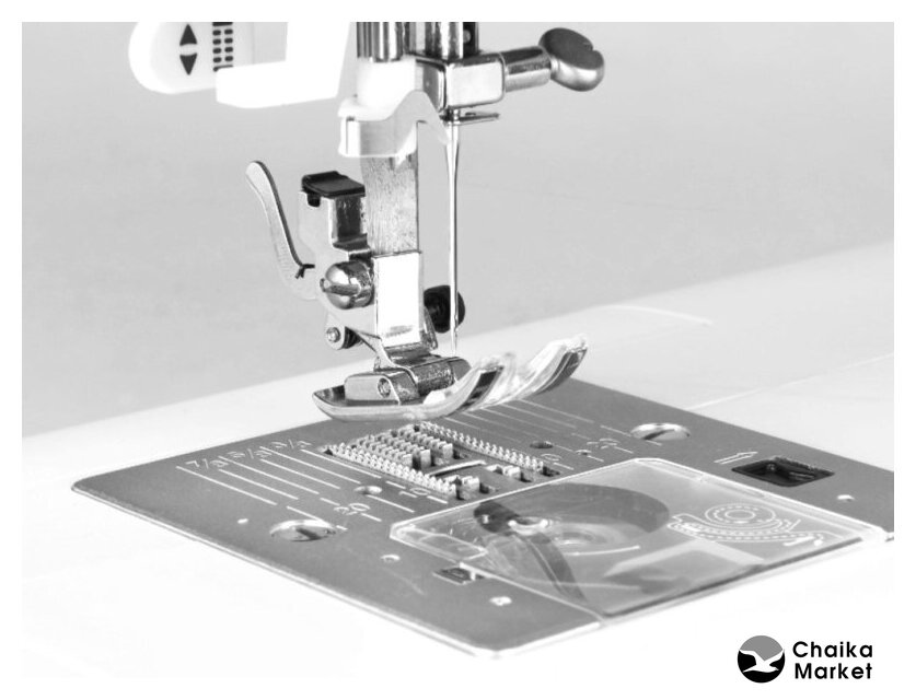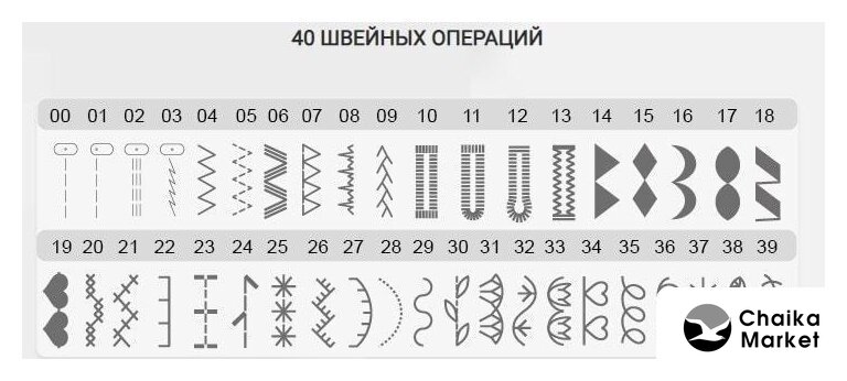 компьютерная, горизонтальный ротационный челнок, автоматическое выполнение петли, швейные операции: имитация оверлочной строчки/потайная строчка/трикотажная строчка/декоративная строчка/алфавит (латиница)/алфавит (кирилица)