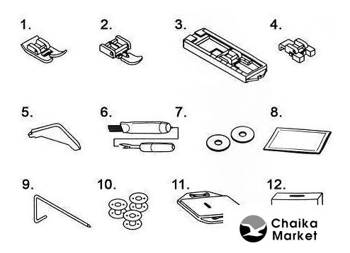 | Лапки | универсальная, для вшивания молнии, для обметывания петель, для пришивания пуговиц |