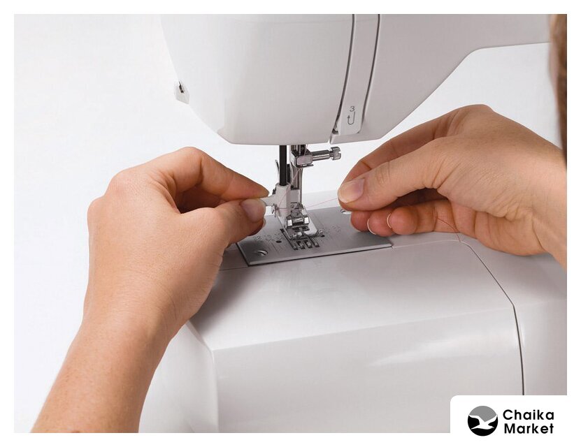 электромеханическая, вертикальный качающийся челнок, автоматическое выполнение петли, швейные операции: имитация оверлочной строчки/потайная строчка/трикотажная строчка/декоративная строчка