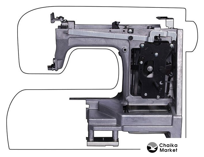 электромеханическая, вертикальный качающийся челнок, полуавтоматическое выполнение петли, швейные операции: имитация оверлочной строчки/потайная строчка/трикотажная строчка/декоративная строчка