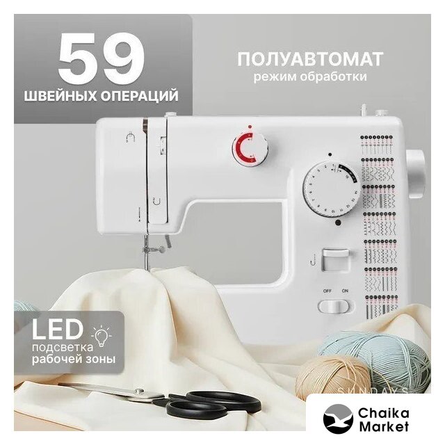 | Комплектация | катушка, нитевдеватель ручной, педаль, подсветка рабочей зоны, сетевой шнур, шпулька |