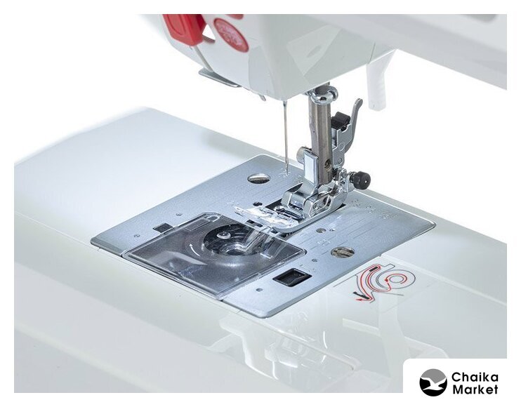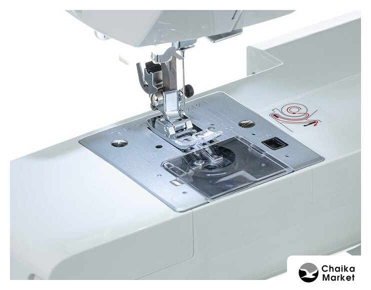 электромеханическая, вертикальный качающийся челнок, автоматическое выполнение петли, швейные операции: имитация оверлочной строчки/потайная строчка/трикотажная строчка/декоративная строчка