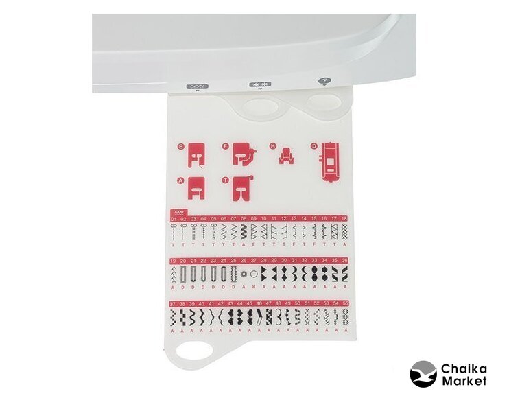 | Лапки | универсальная, для вшивания молнии, для выполнения петли, оверлочная, для потайной строчки, для пришивания пуговиц, для декоративных строчек |