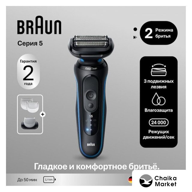 сеточная, влажное бритье, питание от аккумулятора, 50 минут автономной работы