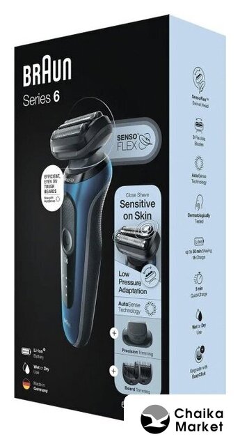 сеточная, влажное бритье, сенсор щетины, питание от аккумулятора, 50 минут автономной работы
