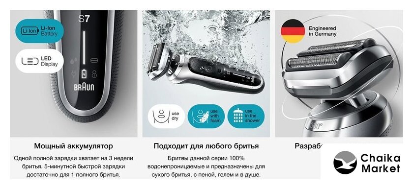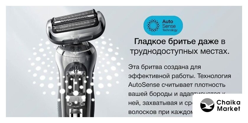 сеточная, влажное бритье, сенсор щетины, устройство для автомат. очистки, питание от аккумулятора, 1 час автономной работы