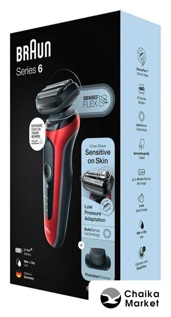 сеточная, влажное бритье, сенсор щетины, питание от аккумулятора, 60 минут автономной работы