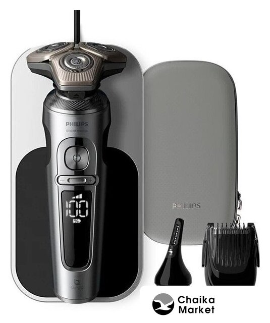 роторная, влажное бритье, сенсор щетины, устройство для автомат. очистки, питание от аккумулятора, 1 час автономной работы