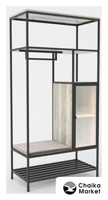 напольная установка, открытая, материал: металл/ЛДСП, стиль: современный, цвет: черный/серый, длина 105 см, высота 175 см, глубина 34 см