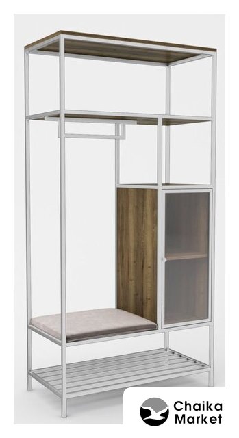 напольная установка, открытая, материал: металл/ЛДСП, стиль: современный, цвет: белый/серый, длина 105 см, высота 175 см, глубина 34 см