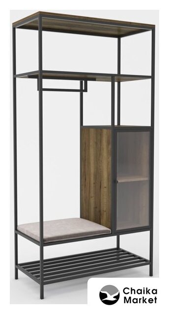 напольная установка, открытая, материал: металл/ЛДСП, стиль: современный, цвет: черный/коричневый, длина 105 см, высота 175 см, глубина 34 см