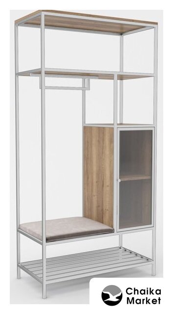 напольная установка, открытая, материал: металл/ЛДСП, стиль: современный, цвет: белый/серый, длина 105 см, высота 210 см, глубина 34 см