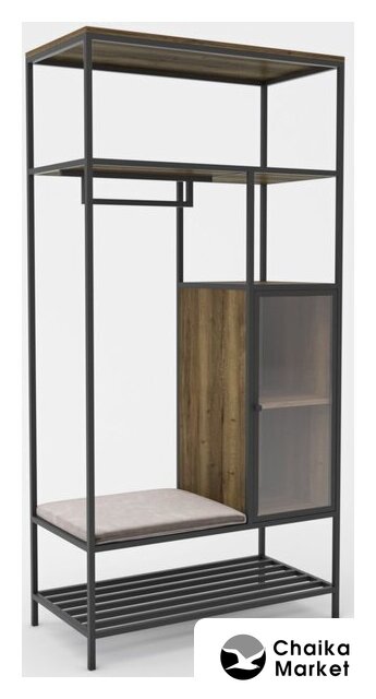 напольная установка, открытая, материал: металл/ЛДСП, стиль: современный, цвет: черный/коричневый, длина 105 см, высота 210 см, глубина 34 см