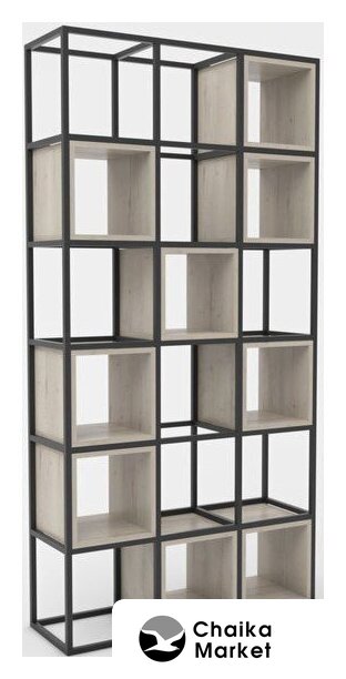 напольная установка, открытая, материал: металл/ЛДСП, стиль: современный, цвет: черный/белый/серый, длина 100 см, высота 200 см, глубина 50 см