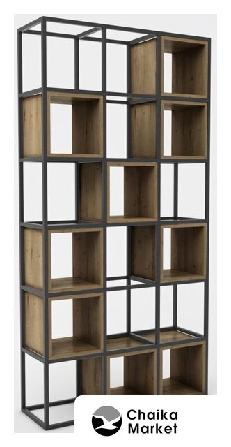 напольная установка, открытая, материал: металл/ЛДСП, стиль: современный, цвет: черный/серый/коричневый, длина 100 см, высота 200 см, глубина 50 см