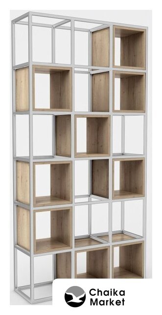 напольная установка, открытая, материал: металл/ЛДСП, стиль: современный, цвет: белый/серый, длина 120 см, высота 200 см, глубина 50 см