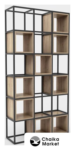 напольная установка, открытая, материал: металл/ЛДСП, стиль: современный, цвет: черный/серый, длина 120 см, высота 200 см, глубина 50 см