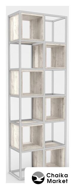 напольная установка, открытая, материал: металл/ЛДСП, стиль: современный, цвет: белый/серый, длина 120 см, высота 200 см, глубина 34 см