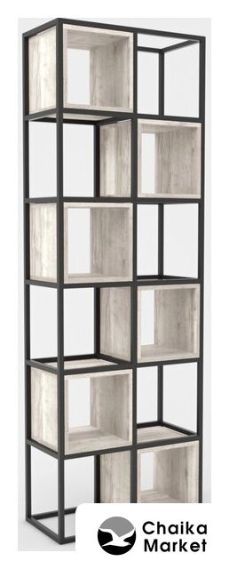 напольная установка, открытая, материал: металл/ЛДСП, стиль: современный, цвет: черный/белый, длина 120 см, высота 200 см, глубина 34 см
