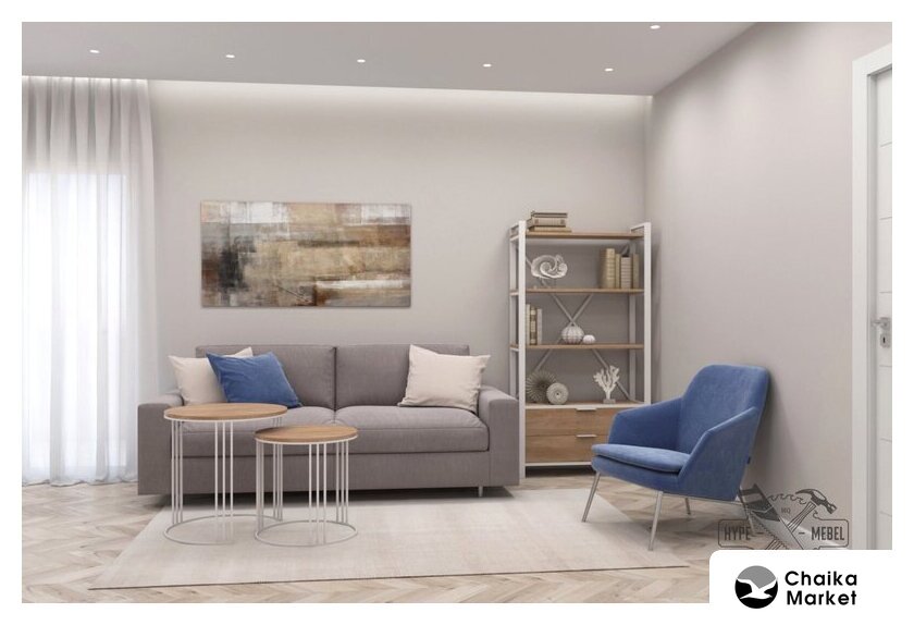 напольная установка, открытая, материал: металл/ЛДСП, стиль: современный, цвет: белый/серый, длина 200 см, высота 150 см, глубина 34 см