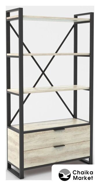 напольная установка, открытая, материал: металл/ЛДСП, стиль: современный, цвет: черный/белый, длина 200 см, высота 150 см, глубина 34 см