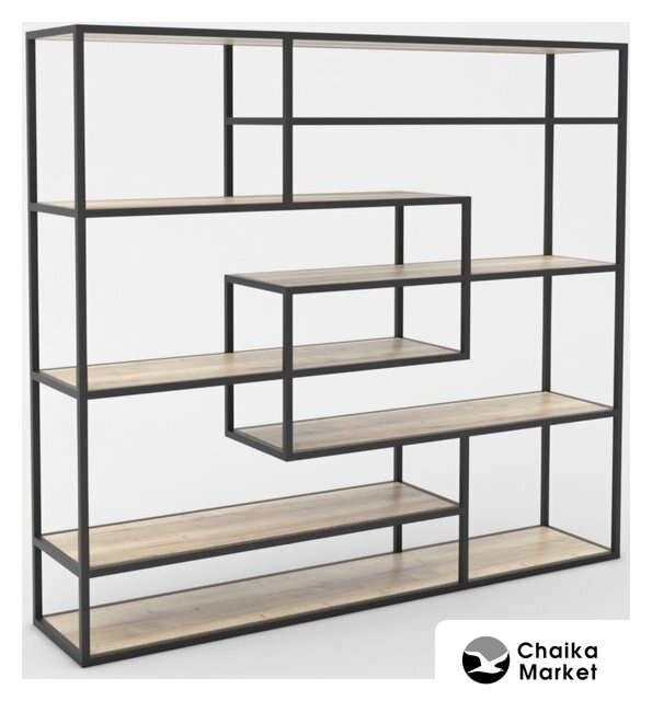 напольная установка, открытая, материал: металл/ЛДСП, стиль: современный, цвет: черный/серый, длина 80 см, высота 170 см, глубина 34 см