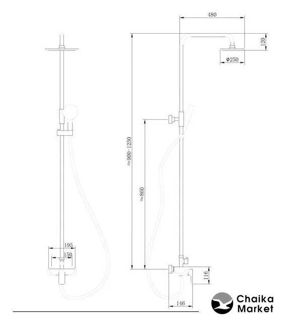 | Комплектация | верхний душ, штанга, ручной душ (лейка), держатель лейки, шланг, смеситель |