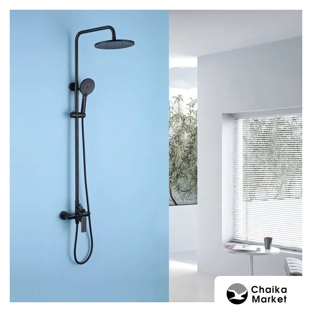 | Комплектация | верхний душ, штанга, ручной душ (лейка), держатель лейки, шланг, смеситель |