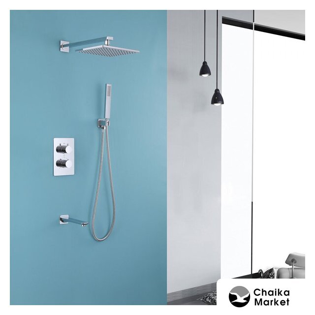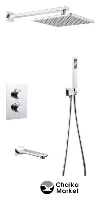 | Комплектация | верхний душ, ручной душ (лейка), держатель лейки, шланг, смеситель, излив для ванны |