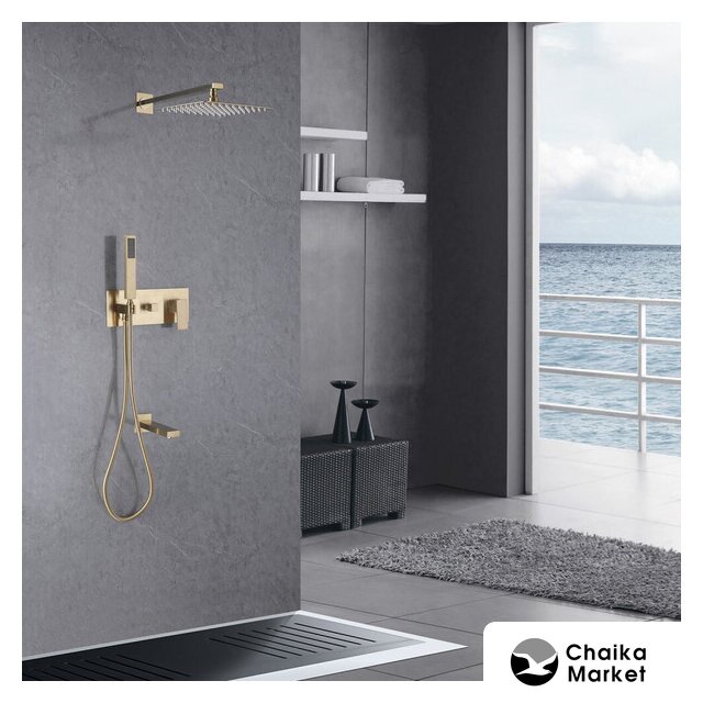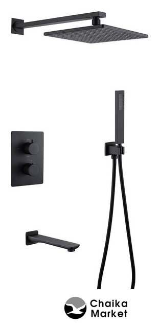 | Комплектация | верхний душ, ручной душ (лейка), держатель лейки, шланг, смеситель, излив для ванны |