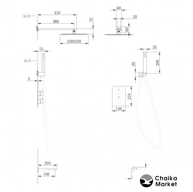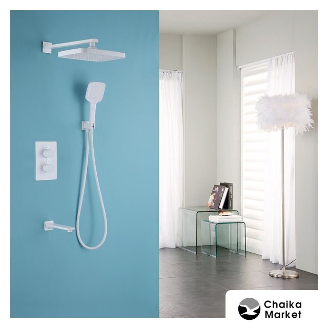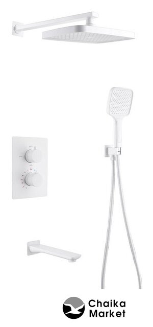 | Комплектация | верхний душ, ручной душ (лейка), держатель лейки, шланг, смеситель, излив для ванны |