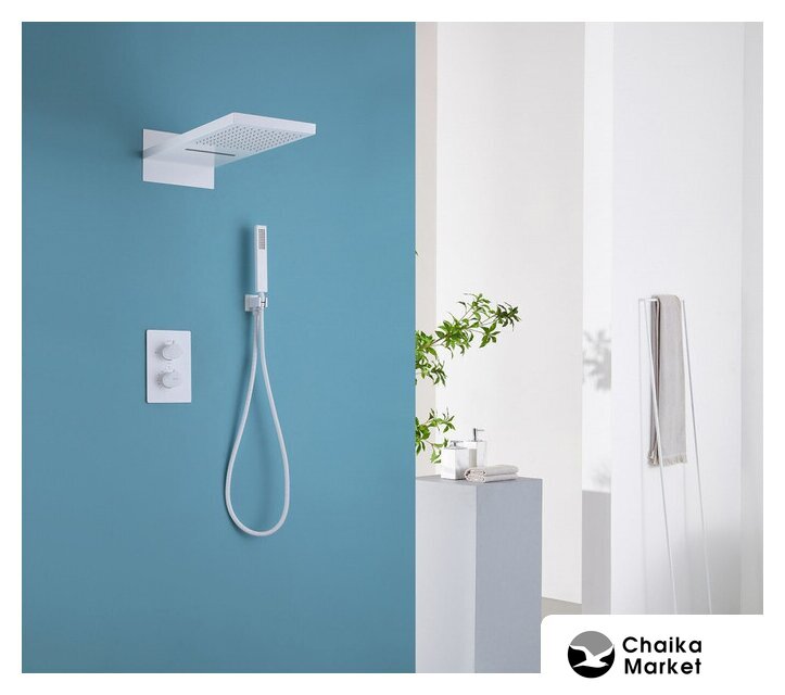 душевая система (с верхним душем), скрытый монтаж, термостатический смеситель, верхний душ 500 мм, ручной душ