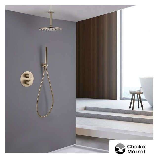 душевая система (с верхним душем), настенный/потолочный/скрытый монтаж, механический смеситель, верхний душ 250 мм, ручной душ
