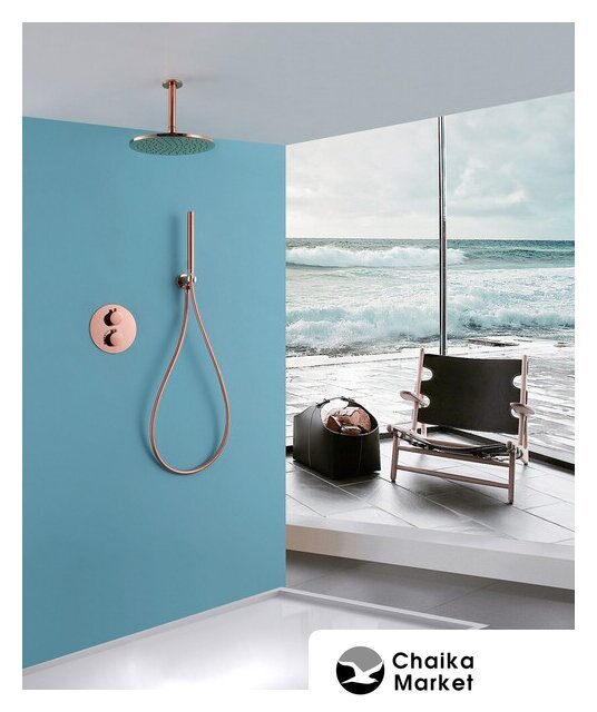 душевая система (с верхним душем), настенный/потолочный монтаж, механический смеситель, верхний душ 250 мм, ручной душ