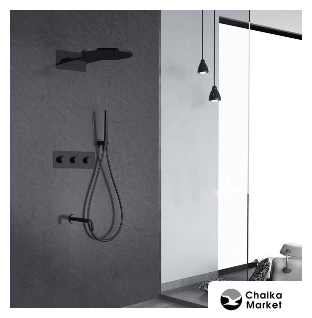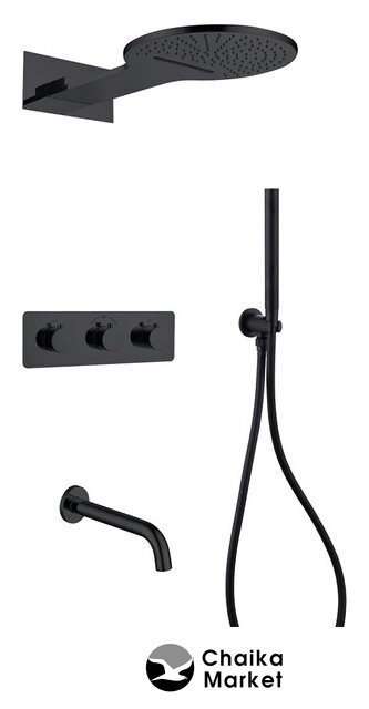 | Комплектация | верхний душ, ручной душ (лейка), держатель лейки, шланг, смеситель, излив для ванны |